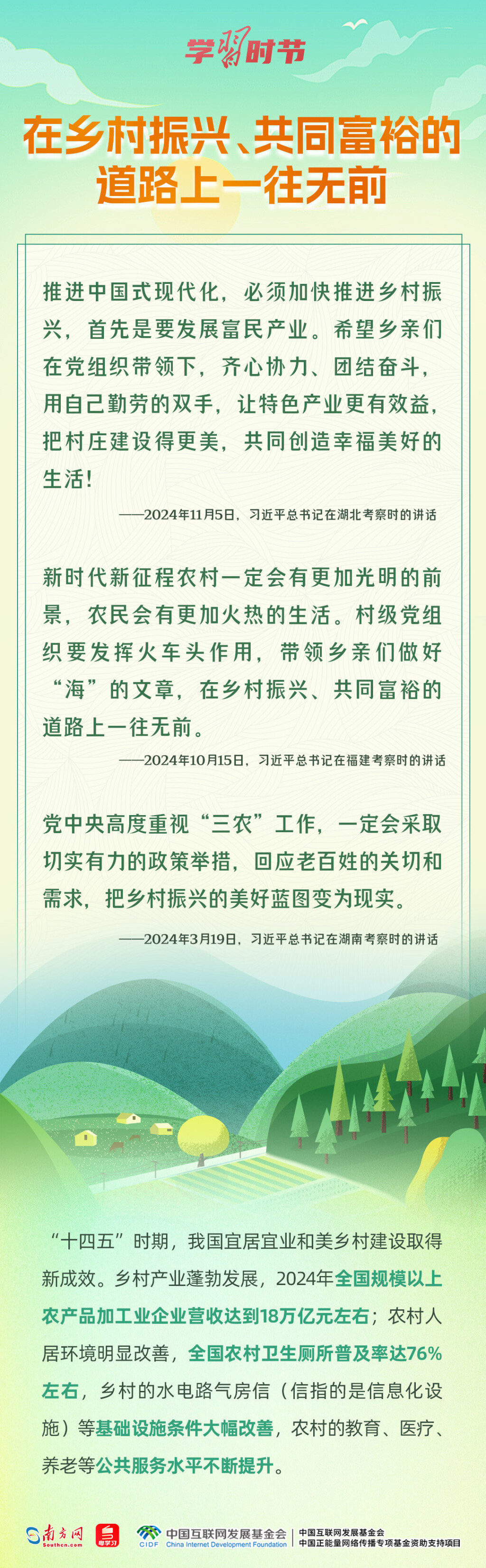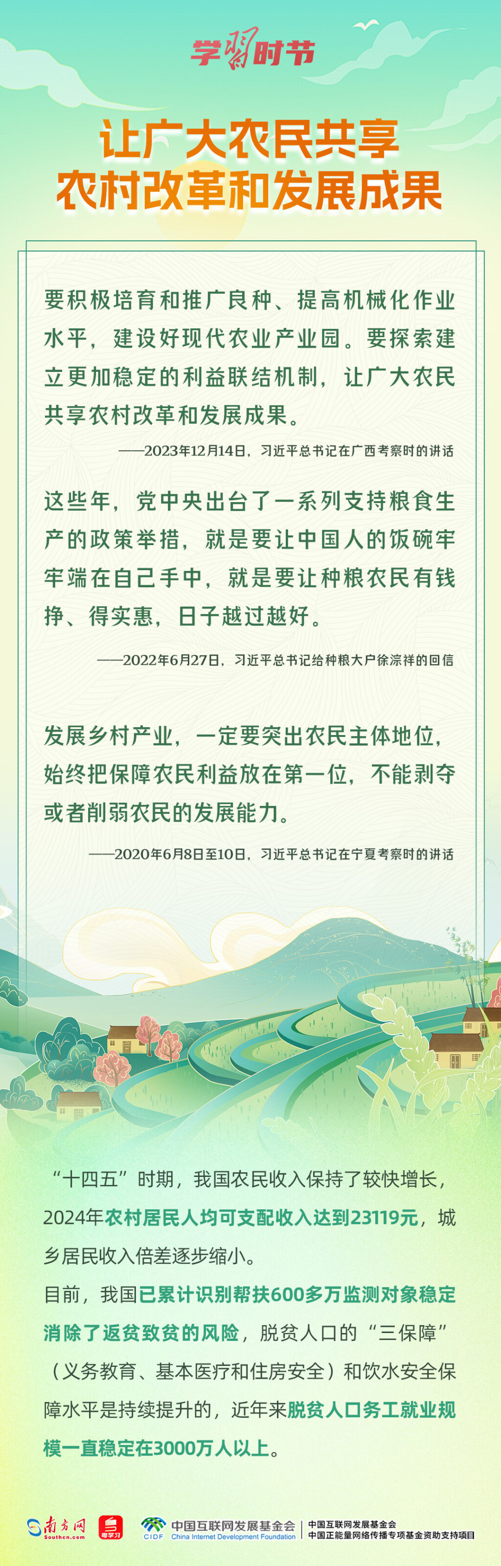 “十四五”以来,我国农业农村发展稳中有进、稳中向好,宜居宜业和美乡村建设扎实推进,农村人居环境持续改善,乡村道路、供水、通邮等基础设施和教育、医疗、养老等公共服务水平不断提升。让我们通过一组海报,一起重温习近平总书记对广大农民的关心与期许,感受我国农业农村发展新成就。